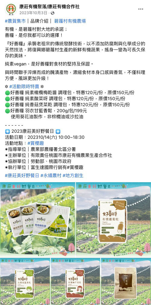 康莊有機農業生產合作社-康莊美好野餐日-經濟日報2023/10/12